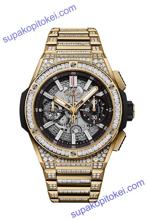 素材 ケース:サテン&ポリッシュ仕上げの18Kイエローゴールド、64個のダイヤモンド&14個のバゲットカット ダイヤモンド