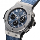 2005年の登場以来、ウブロの売上げを牽引してきました。"融合"のコンセプトが表す通り、様々な新素材を利用した時計を野心的に売り出しています。カーボンやタングステンに加え、自社開発した「ウブロニウム」をケースに採用するなど、独自性では群を抜いています。また、文字盤を構成する全てが黒色の「オールブラック」や、メカニカルなスケルトン文字盤の「アエロバン」など、デザインも多様です。「キングパワー」シリーズに次いで、自社ムーブメントであるUNICOを採用したモデル「ビッグバン ウニコ」も人気です。主なケースサイズは41mmと44mmですが、UNICO搭載機では45mmとなっています。