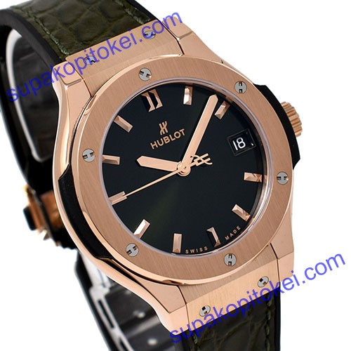 時計コピー >> Hublot(ウブロ) >> クラシック フュージョン >> ウブロ 腕時計 女性用 金無垢 CLASSIC FUSION クラシック フュージョン 581.OX.8980.LR キングゴールド レディース ウォッチ アナログ クォーツ ワニ革 ラバー ベルト グリーン