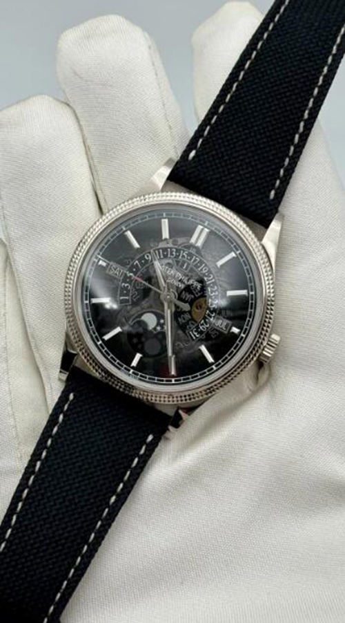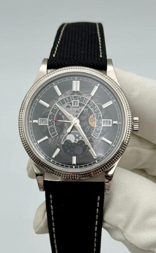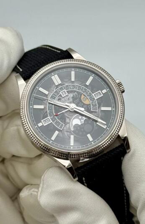 機能:レトログラード日付表示針付永久カレンダー。 曜日、月、閏年サイクルを窓表示。 ムーンフェイズ