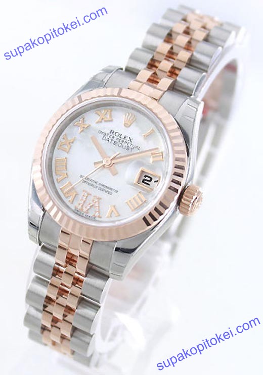 時計コピー >> ROLEX(ロレックス) >> デイトジャスト >> ロレックス Ref.179171N デイトジャスト RGコンビ ダイヤインデックス 5連ブレス ホワイトシェル ローマン レディース
